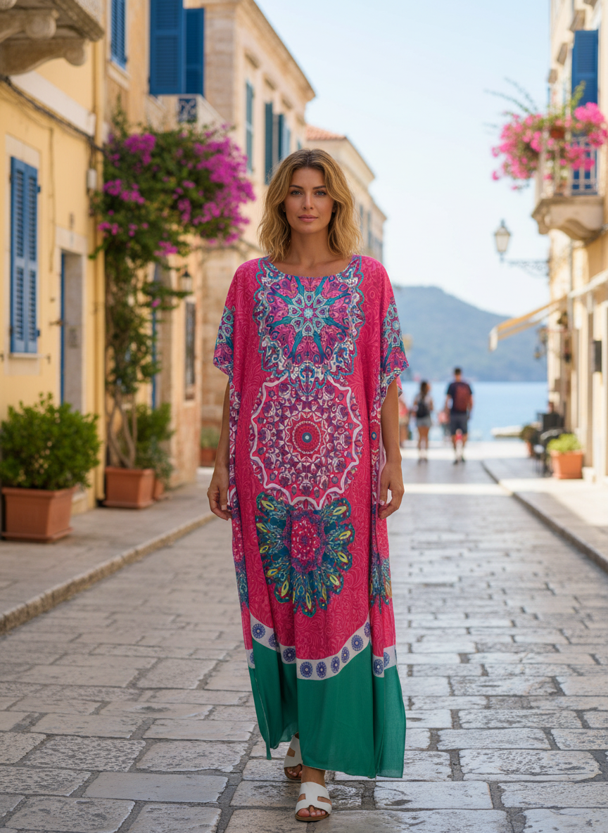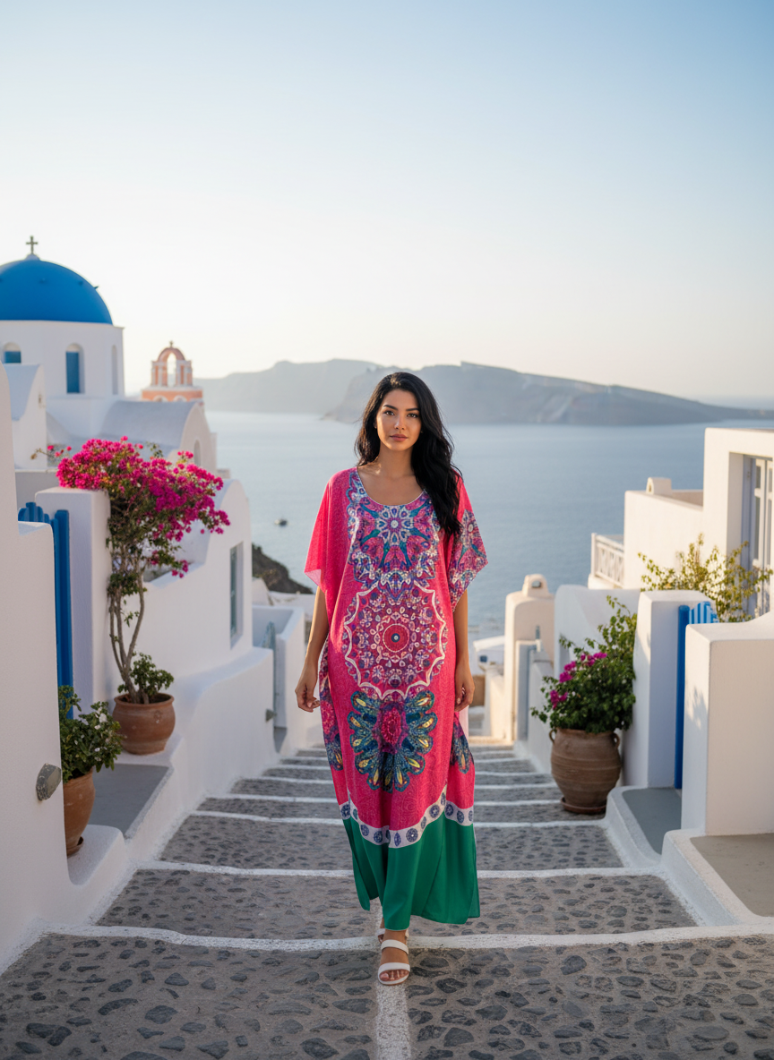 Στις διακοπές σου, είτε πας σε νησί είτε στο βουνό τα χρώματα του το φούξια, το σμαραγδί, το μπλε θα δίνουν λάμψη σε σας που θα το φοράτε και στο τοπίο.