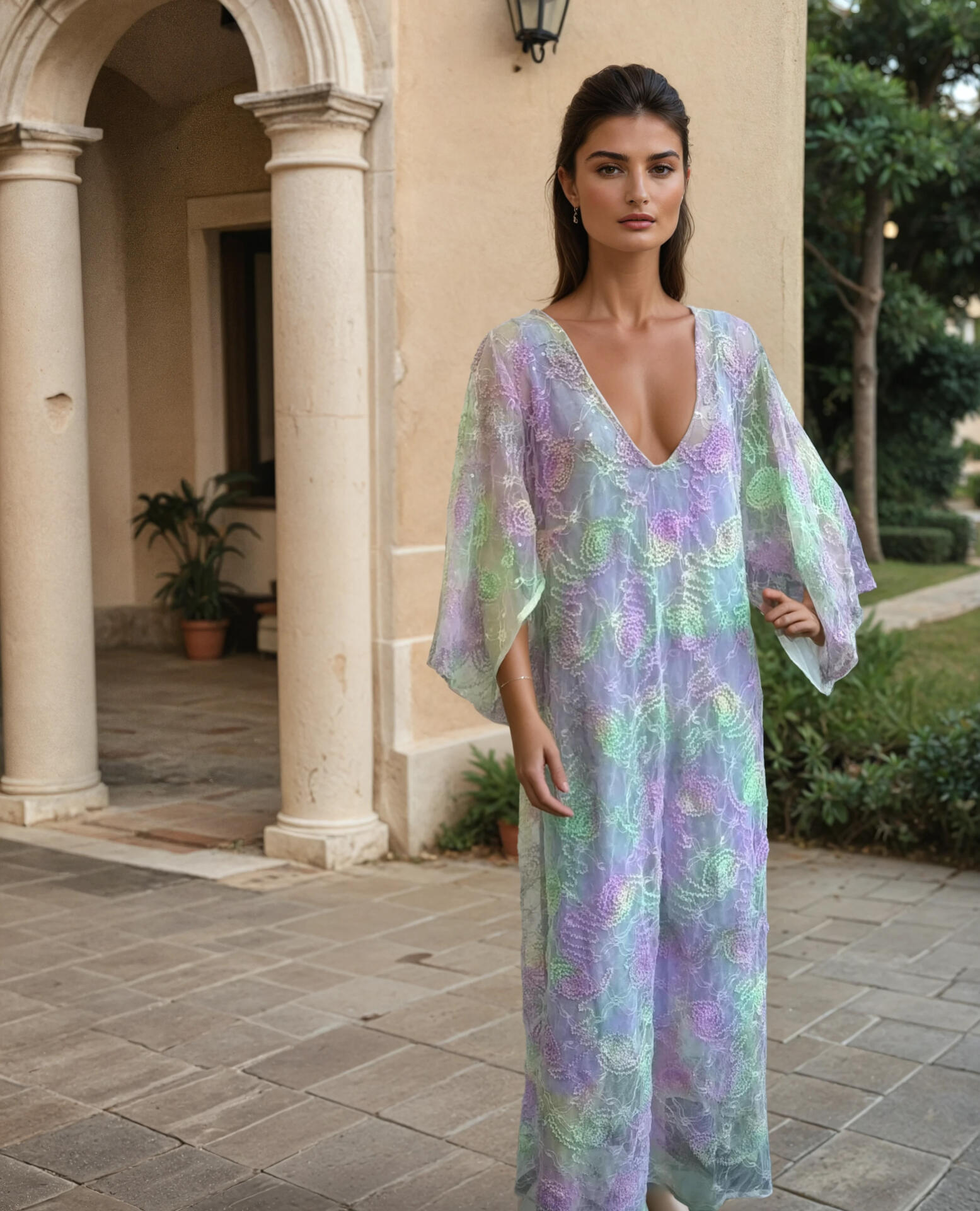 Καφτανοφόρεμα από τούλι βαμβακερό για γάμο ή βάφτιση.(Μύκονος).