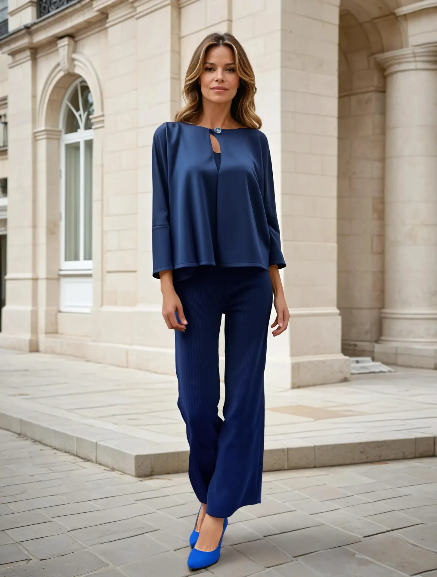 Μπλε παντελόνα τύπου κοτλέ.