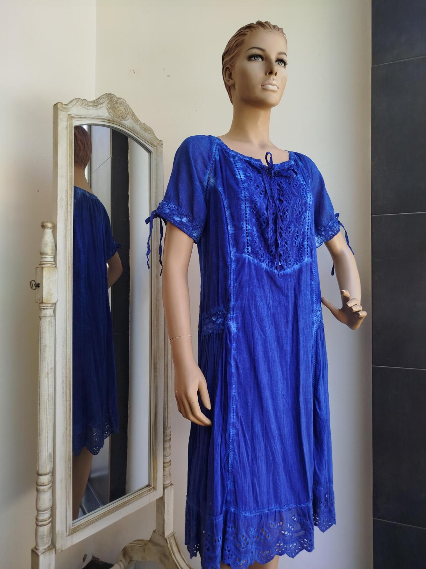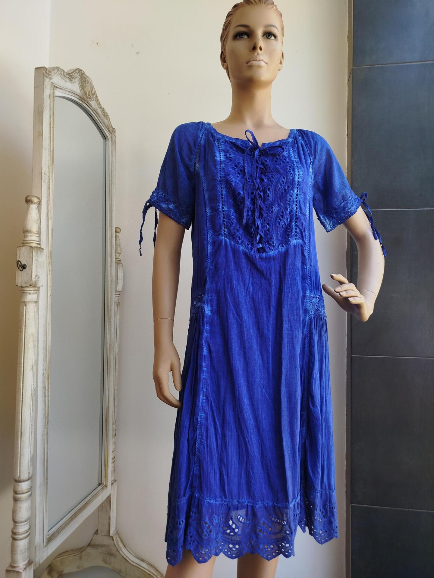 Φόρεμα μπλε βαμβακερό με δαντέλα.