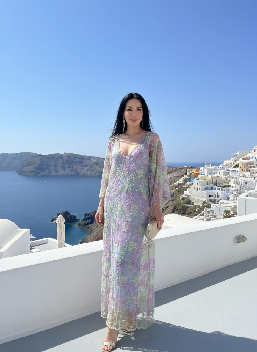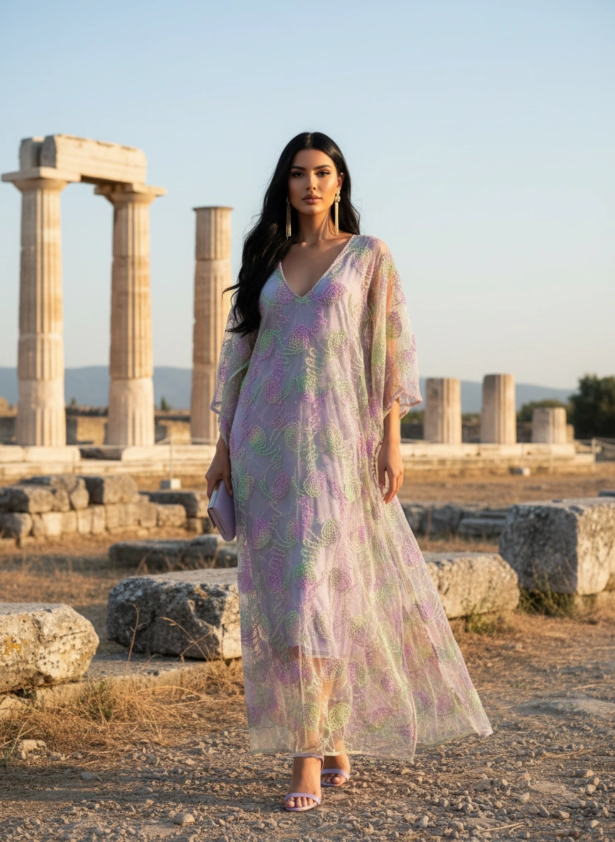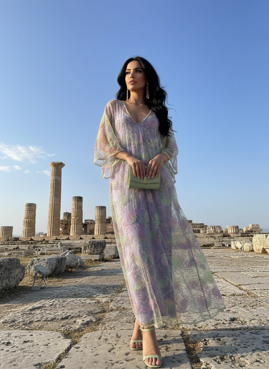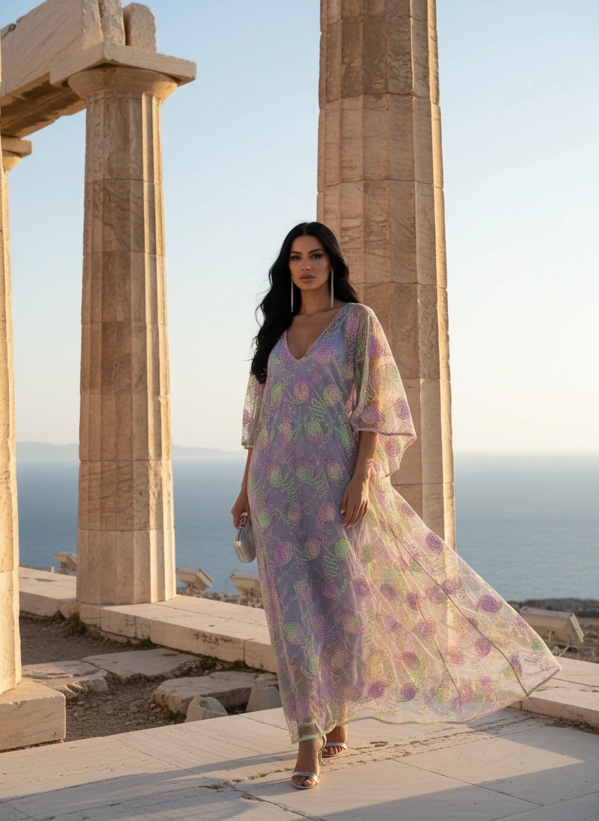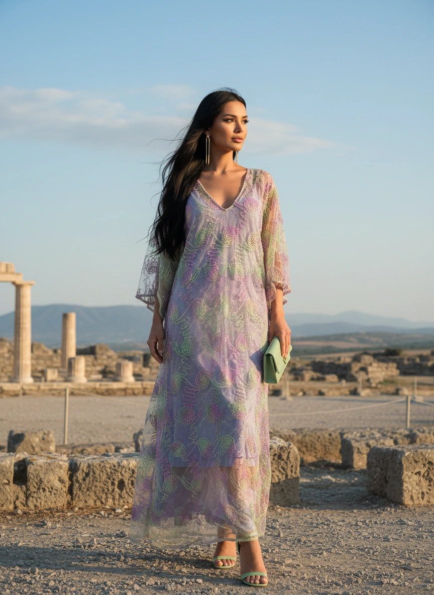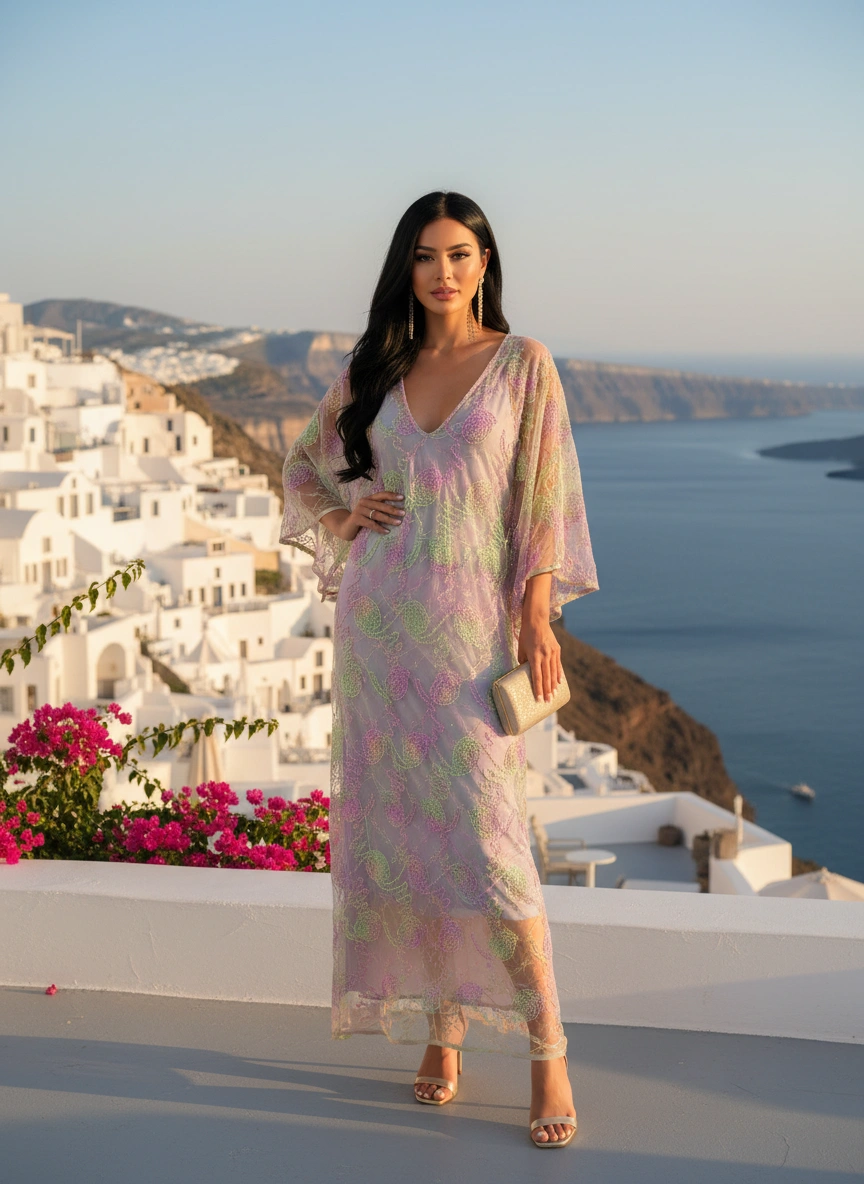 Καφτανοφόρεμα από τούλι βαμβακερό για γάμο ή βάφτιση.(Μύκονος).