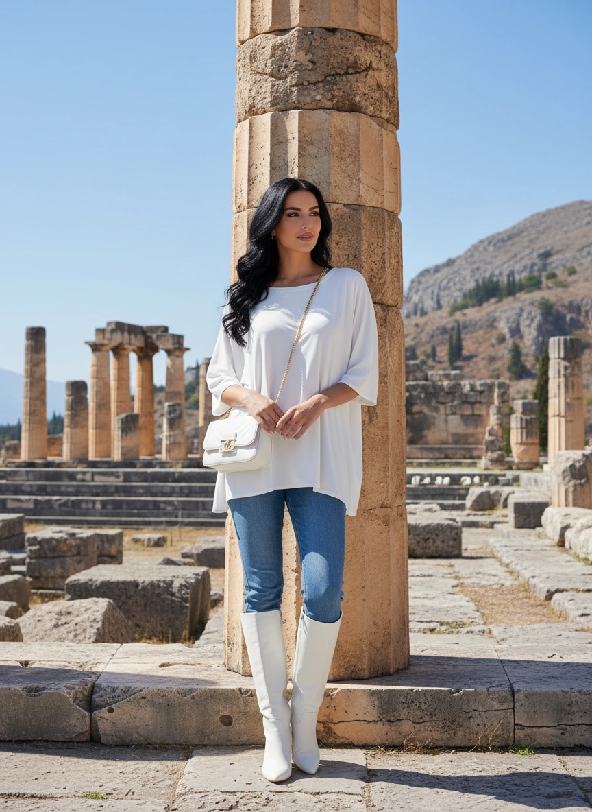 Μια πολύ ωραία μπλούζα φτιαγμένη από λευκό ελαστικό ύφασμα κρεπ.