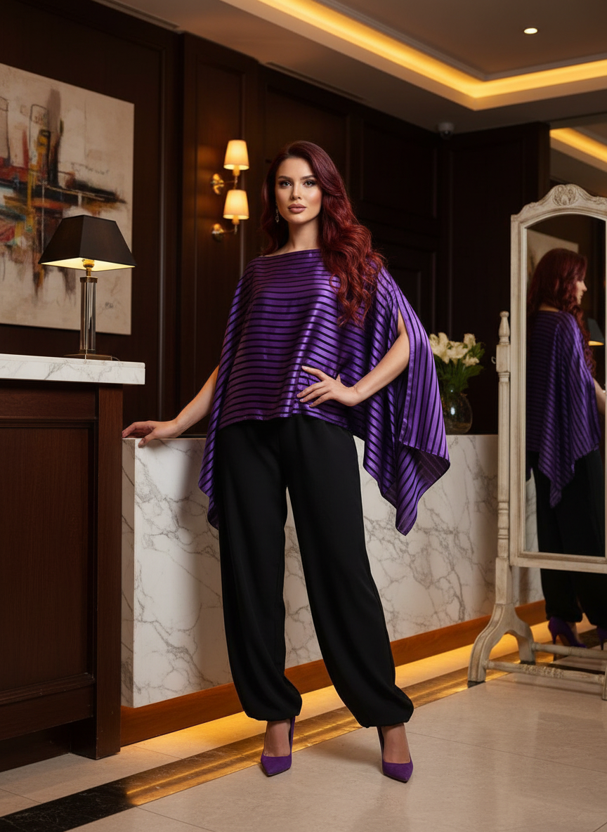 Ένα πάρα πολύ ωραίο και εντυπωσιακό σατέν πόντσο σε μωβ χρώμα.