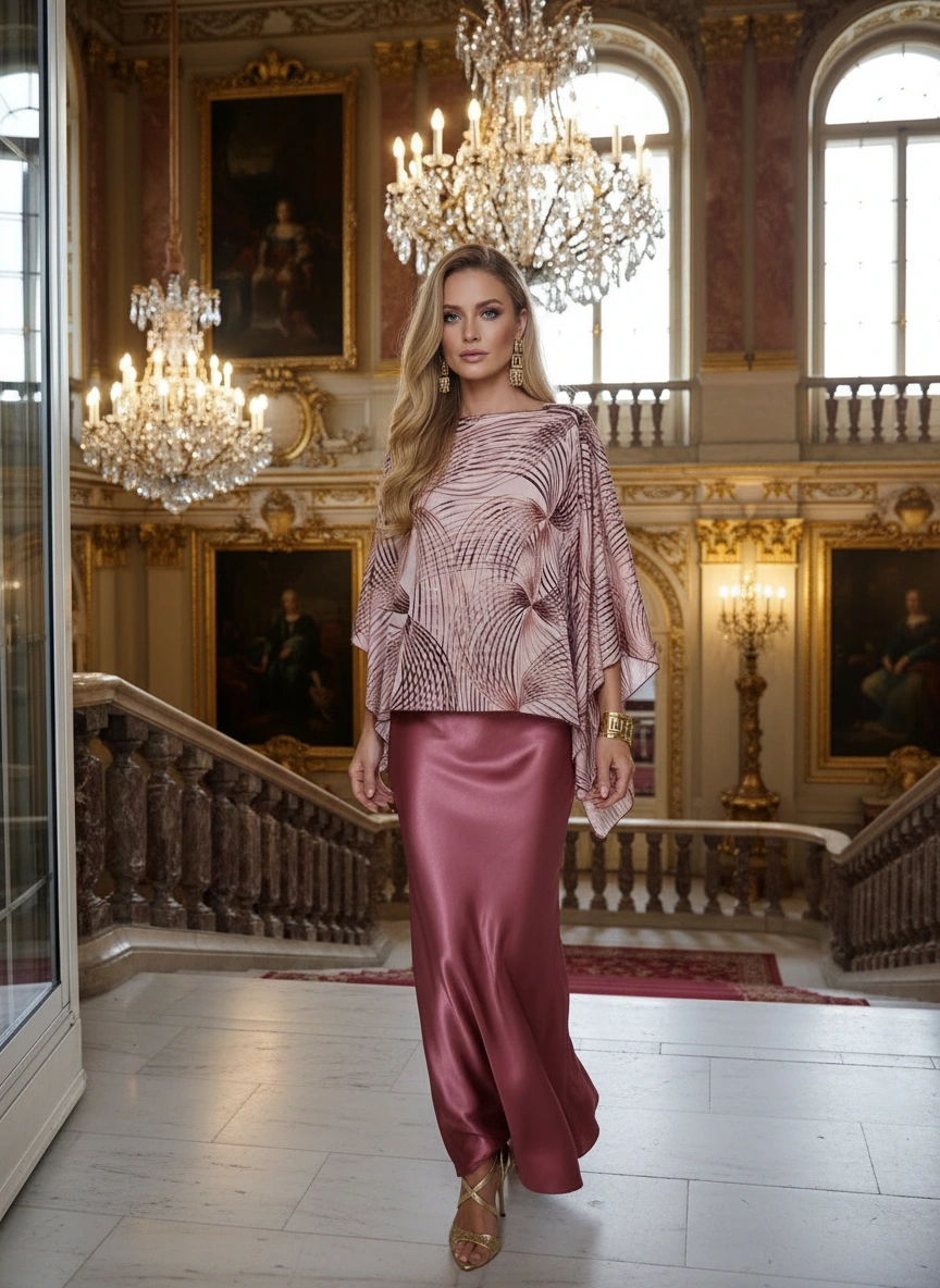 Πόντσο Σατέν Ροζ – Καφέ.